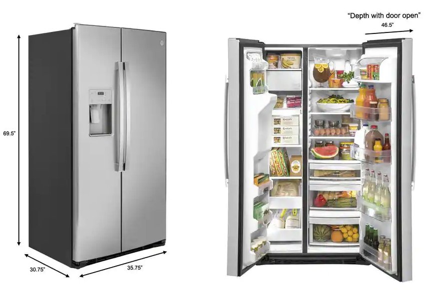 - 35 3/4 in. wide side by side refrigerator with LED lighting
